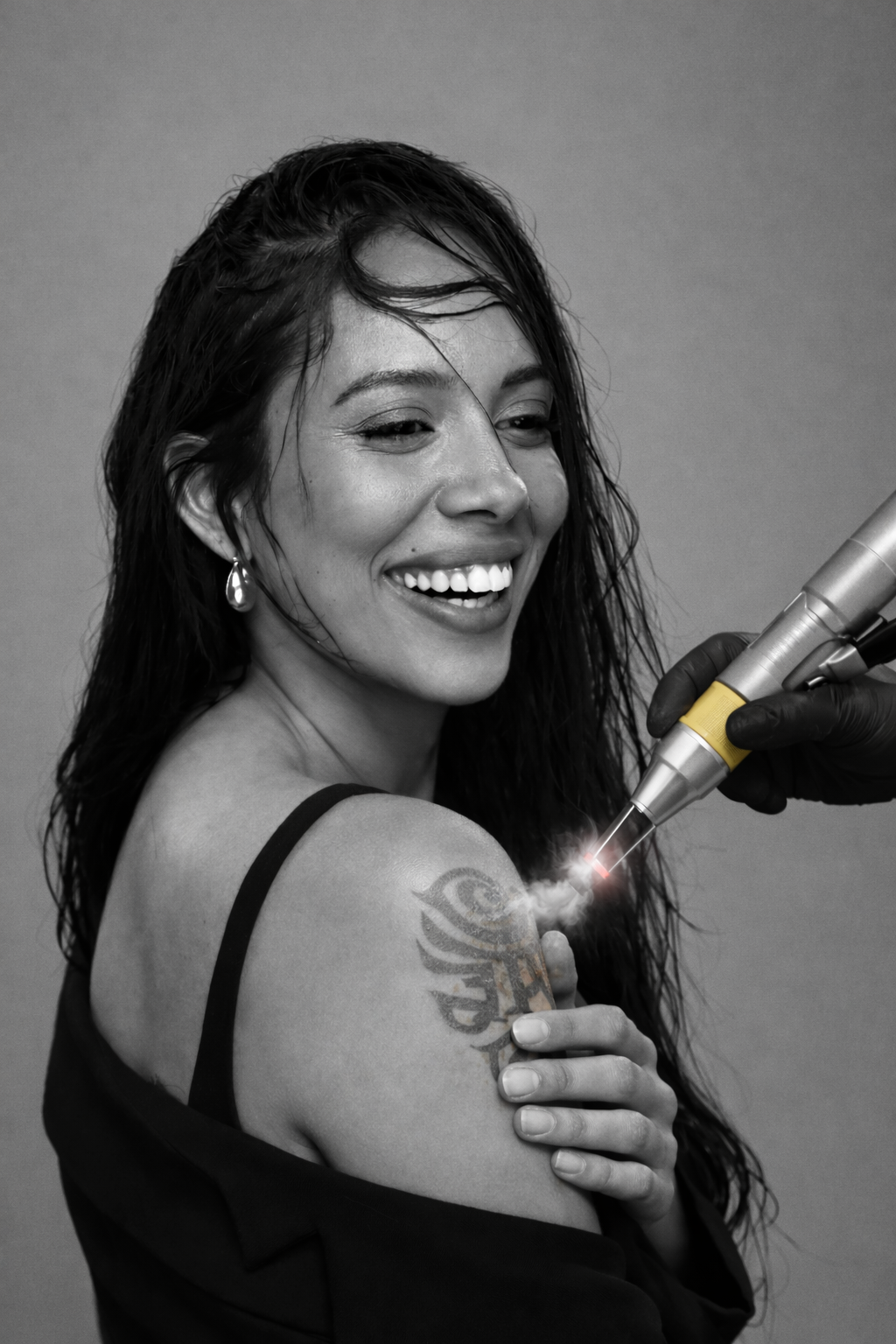 הסרת קעקועים מתבצעת ע’’י שילוב פעולה בין אדם ומכונה, מוח וטכנולוגיה.