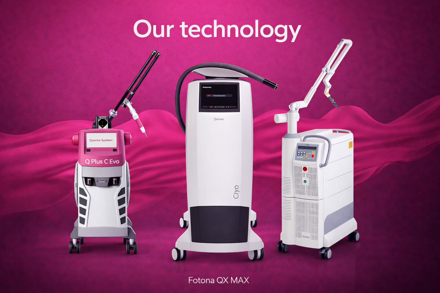 • משתמשת באורכי גל שונים של לייזר כדי לפגוע בחלקיקי הדיו של הקעקוע.